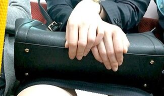 Pcolle (電車対面)(顔出し)タイトミニをお召しになってパンストあんよむき出し…ポニテを解いてキレイなロングの黒髪を披露しちゃうOLお姉