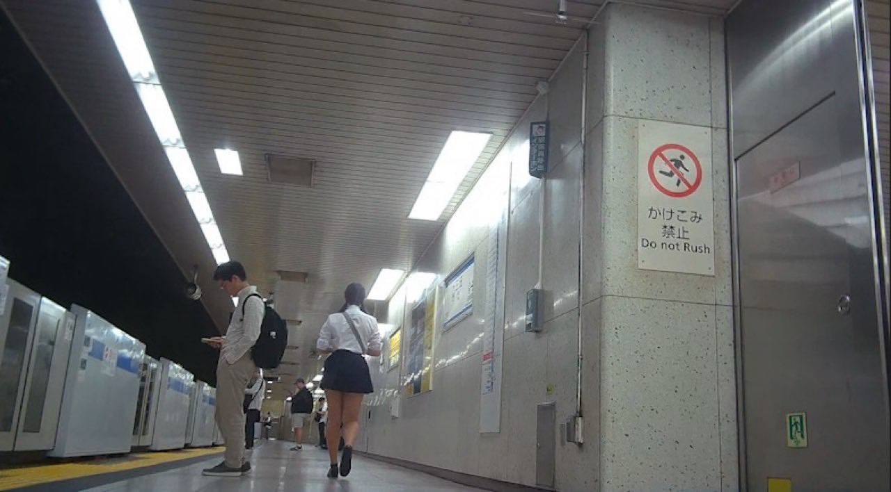 大人しめのツインテールの子。ホームでばったりミニスカKに遭遇。バレないように追跡開始。中身はまさかの純白