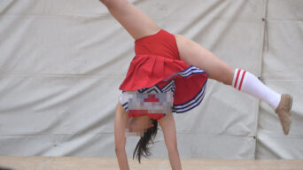 【再販】赤アンスコのバトンガール・側転でアンスコが大胆に見えます