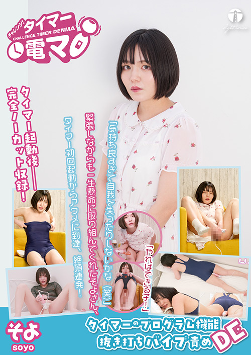 「気持ち良すぎて自我を失ったりしないかな(笑)」緊張しながらも一生懸命取り組んでくれた「そよ」さん、タイマー初回起動からアクメに到達、唐突にやってくる絶頂の連発で人生初の快楽へ!ペニス型アタッチメントを電マにつけて挿入+固定、手枷拘束したうえノンストップでランダムな刺激を与え続けるタイマー電マシリーズ…特典映像として“チャレンジ直後の電マオナニー”も収録。