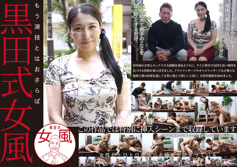皆さんは「女性用風俗」ってご存じですか?これは、女性を対象にした会話・マッサージ・スキンシップを中心に、性的サービスを伴う事もあるサービスです。一昔前だと「そんな場所に行く女性なんているの?」といった否定的なイメージを持つ人は多かったと思います。しかし近頃は、そうした先入観が薄れ「体験してみたい」と感じる女性が確実に増えてきています。これは決して「女性が開放的になったから」「性に奔放になったから」という単純な話ではなく、「癒されたい」「自分が望む、自分に合った事を満たしてほしい」と考える女性が増えてきているのではないでしょうか。言い換えれば「今のセックスライフに満足できていないからこそ、お金を払ってでも満たされたい」と思う女性が結構いるということです。残念ながら、世の中のセックスは男性主導で自己中心的なものになりがちで、そこに不満を抱く女性が多いというのは事実だと思います。ただし、男性側の立場として弁解させてもらうなら、私たちは「相手のあるセックスの仕方」をきちんと学ぶ機会がほぼ無いに等しいです。情報源は、友人との会話、アダルトビデオ、エロ漫画、あるいは最近で言えばSNSで流れてくる切り抜き動画など。しかし、そこで目にするのは「丁寧な前戯」ではなく、激しいピストンや過激な手マンなど、ガシガシしたシーンばかりです。「AVの真似をしても女性は満足しない」と言われても、私たち男性はどうすればいいのでしょうか…その答えやお手本が見つからず、困っている男性も多いのではないでしょうか。HOWTO系のコンテンツも参考にはなりますが、私が心からおススメしたいのが、ベテランAV男優・黒田悠斗さんが出演する、女性用風俗をテーマにした作品です。黒田さんは男優業の傍ら、実際に普段から女性用風俗の施術も行っており、その中で培ったテクニックを惜しみなく披露しています。何千人もの女性と向き合ってきた経験をもとにした、見せるためではない「相手の気持ち良さ」を最優先したプレイは、まさに圧巻です。今回の相手は、夫とはかなりのレスで、緊張しすぎて手汗ダクダクな人妻・豊崎さん。黒田さんの施術は派手さこそありませんが、女性を敬い慈しむようなタッチ、キス、クンニで、彼女の身体と心をじっくりと溶かしていきます。見ているこちらも「女性ってこんなふうに感じるんだ」と驚かされ、学びになることばかりです。もし、あなたがこの黒田式マッサージを恋人や妻に試してみたら、これまでとはまったく違う、深く熱い関係を築けるのではないでしょうか。女性が気持ちよさそうに感じている姿を見たい方。自分のパートナーをもっと喜ばせたいと思っている方。こうして欲しいと言えるようになりたい方。あるいは、自分自身が黒田式マッサージを体験してみたいという方。さまざまな方が楽しめる作品になっていると思います。ぜひ一度ご覧になってください。