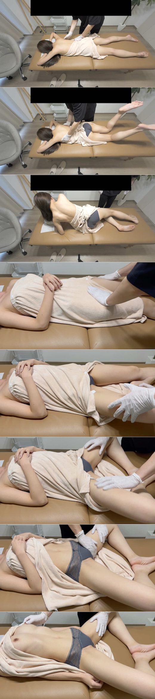 マッチングアプリで成功率が高い、マッサージ受け専女子。気持ちよくなってお小遣いもらえるなんて、、、ん?気持ちよくってどっちの意味だ?!そうか、この手があったか!世の男性は賢い!ということで私も早速真似した上で更に、撮影もしてみました。今回は「いろは」さん。大きなお胸と綺麗なクッキリパイパン、そしてとても敏感なお体で素敵なマッサージタイムとなりました。最初はちゃんとマッサージしてますが、徐々にくすぐったいポイントを攻めていき、通常ではあり得ない仰向けを提案。くすぐったさを堪えるのに必死な「いろは」さん。そのうち、お股を拡げられようが、股間に触れられようが、警戒が解けていきます。しれっとタオルを上にあげ、やわらかくて大きな胸を丸出しにし、大胆にもみほぐし、乳首をつまむと「ビクンッ」反応めちゃくちゃいいです。もうこれはオーケーなんだなと勝手に解釈、重点的に股間をマッサージします。、、、ついに喘ぎ声が、、、そして、ここはノーカットでわかりやすく撮れていますが、パンティーにシミが作られていくんです。メスが性を出してきた時の声を聞きながら徐々に大きくなるシミ。万歳で両脇丸出しで巨乳をモミモミ。ついにはワレメ食い込みにまで滲むシミ。。。パンティーを下げて確認。いいシミです。アップで観察しましょう。そして最終確認。顔だけ隠しておっぱいもアソコもパンツのシミも丸出しな恥ずかしい姿のまま「腰を上下に動かしてください」「ん、、、ん、、、」喘ぎながら腰を振る「いろは」さん。完全に入ってますね。では、これより膣マッサージに入ります。感度のいい「いろは」さんの反応はすごくナチュラルで、映像を見ただけでも膣の締め付けがどこで起きたかわかるほどです。最後に指を抜くとヒクンヒクンしながら白い液体を垂れ流す「いろは」さんなのでした。後編もお楽しみに。※本コンテンツは出演者の同意のもと、撮影・販売の承諾を得ています。※顔にモザイク・ぼかし加工を施し、個人を特定できる情報は一切含まれていません。※素人撮影のため、プロ作品のような演出や編集ではありません。※日本国内法を遵守し、全ての年齢確認書類を保管しています。ファイル形式:mp4解像度:3840 ×2160再生時間:10分02秒