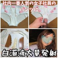 【クロッチ射精】会社で1番人気の女子社員のオマンコ汁で黄ばんでいる可愛いパンティーにおじさんの精子を大量にぶっかけてやった。