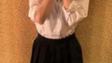 スク水コスで、口を真一文字にしてオジサン達の責めを受ける女子さん。