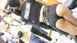 しっかりTバックを透かせて、グイグイ歩きます。