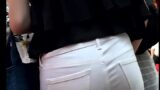 店内にいたとても綺麗な美脚に超ミニスカを履いたお姉さんのお尻が半分以上出ていました。