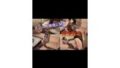 冒頭では青紫。後半はマットな黒です。どちらもフロントジッパー全開で谷間や乳の膨らみが丸見えです。