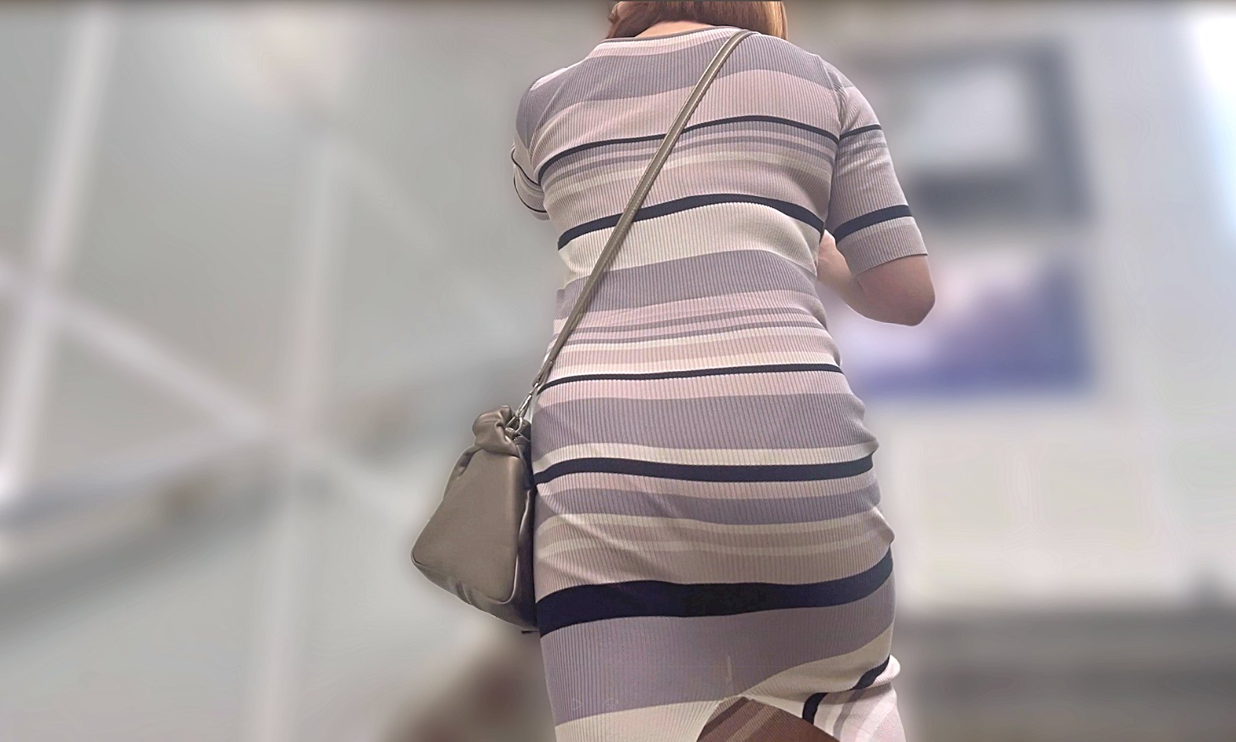 ショルダーバッグの紐がいわゆるパイスラの形になって、乳がより強調されているなど上から下まで下品なワガママボディのエロ女でした。