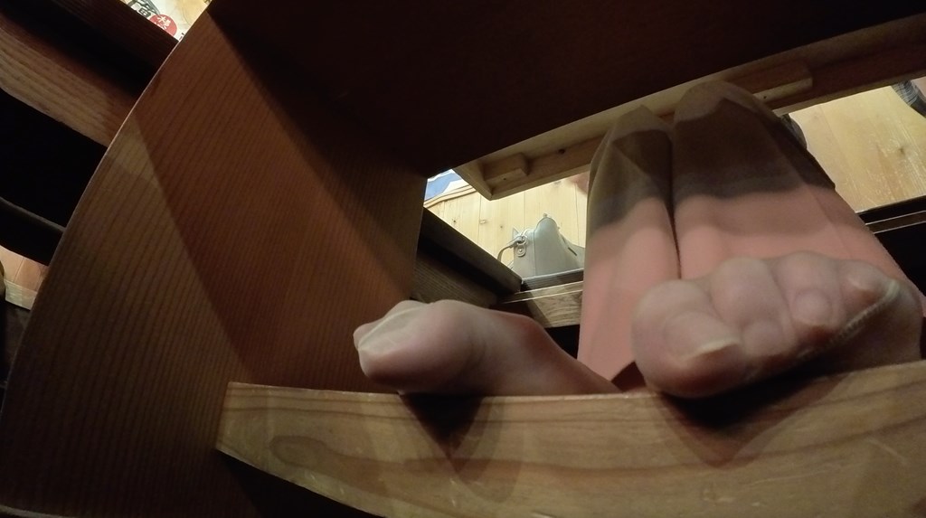 しばらくするとまた足元が机の下へ…