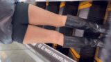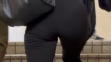そんなピッタリなパンツがいきなりの階段登りで披露されます。見事なバックショットで、うっすらと内側のラインが透けております!さらに駅構内を歩いたり屋外へ移動したりとするなかで、ほぼピッタリ追尾!