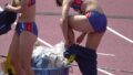 次はスカートの中からパンツをイッキにずりさげちゃいます。綺麗すぎるお股が露わになっちゃいます。さすがに抵抗があったのか横を向いてしまいます。