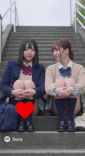 制服姿の女子2人が階段に座っておしゃべりしているところを収めた動画です。