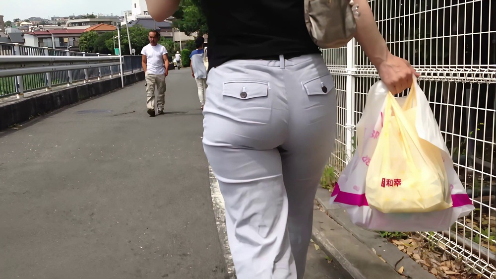 ある日の買い物中に出会った30代と思しき奥様です。凛とした美しい奥様でしたがいやらしい巨尻をされていました。