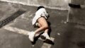 場所はマンションの非常階段で階段を登ってるところを、階段下からパンツが映るように撮影しています。