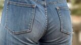 屈んで作業を続けるお姉さんの、ピチるタイトスカートが丸みを帯び薄ら透け見えるTラインが見えます。お尻がカメラ前にきた瞬間、タイトミニスカートからハミ出るTラインが食い込む豊満お尻を捉えます。セットアップスーツの、締まったくびれが色っぽく見えます。