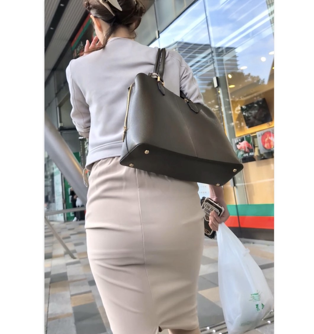 眩しい白のタイトスカートかつ昼間の時間帯ということもあり、終始クリアに捉えることができました。フェロモンをプンプン振りまいてその歩く後ろ姿に、ときに混雑のために接近もあり見どころ多し!