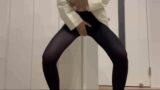 カメラの方に向き、脚でお客様の腿を指圧し、キャッチした正面パンティライン。