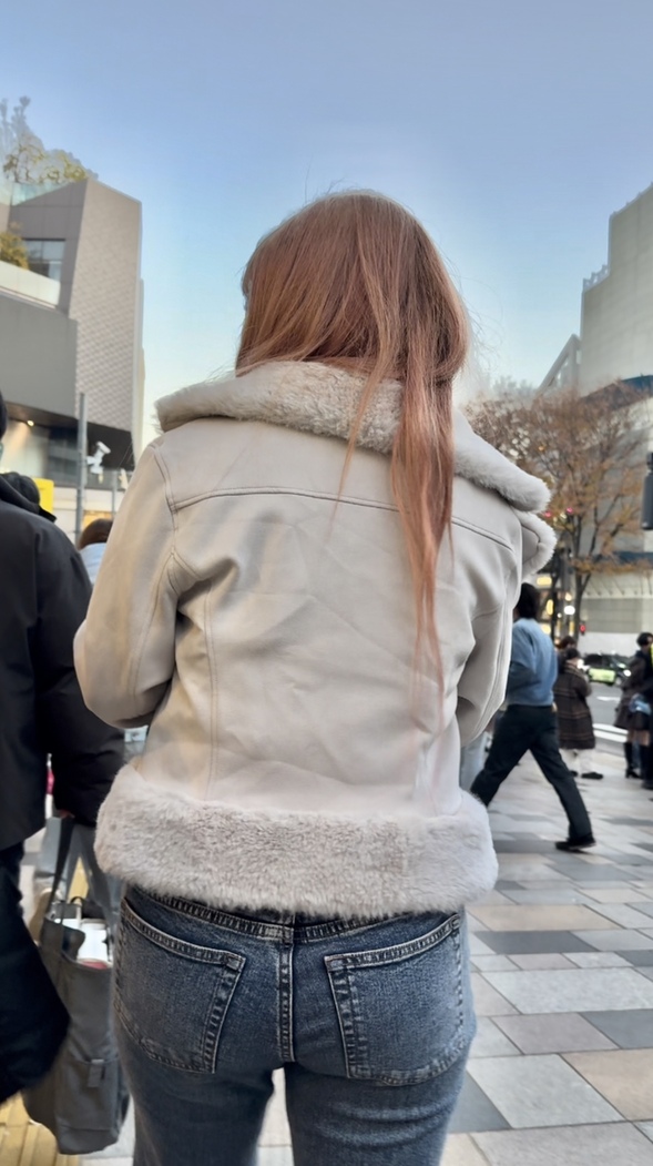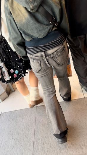 1人目はグレーのフレアデニムのお姉さん!小柄な体がキュート
