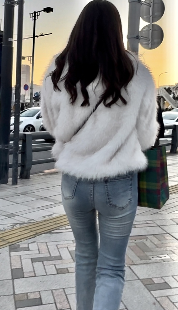 1人目(表題)は白のもこもこのトップスにフレアデニムのお姉さん!