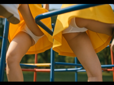 【AI動画】ある黄色い衣装の鼓笛隊の一日(前篇)・ジャングルジム等で遊んで白アンスコ丸見え