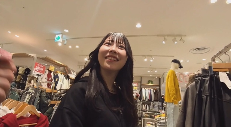 自分の服を選んだあとは、すぐにレディースコーナーへ移動するんですが、そこで流行ってるスカートを聞いたところ「私の好みは~」と好きなのをチョイスしてくれます。