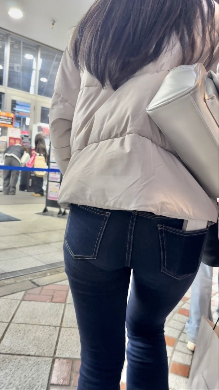 1人目(表題)は黒のアウターにライトブルーのフレアデニムのお姉さん!