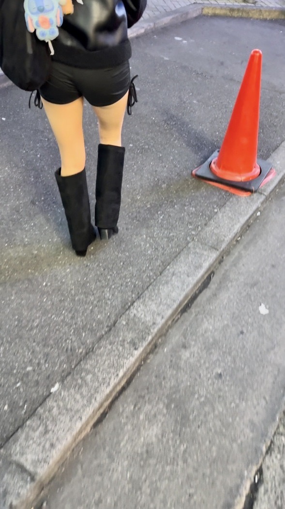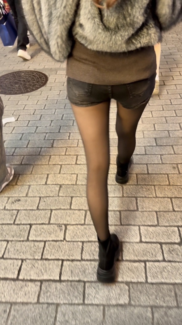 1人目(表題)はパンストにデニムのショートパンツのお姉さん!すらっと伸びた長い足がgood!