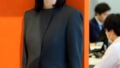 春風のいたずら(歩行シーン) 桜並木の商店街をスマホを見ながら歩く彼女。