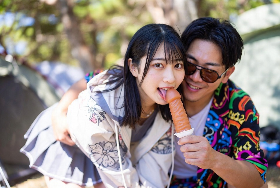 室内に移動してからは、Tバック一枚のあられもない姿で先輩にまたがり、楽しそうに記念撮影をします。