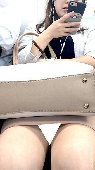 スマホに夢中のOL奥さま…お手手をスマホに添えちゃったため…タイトミニ▼…終始むき出し…。