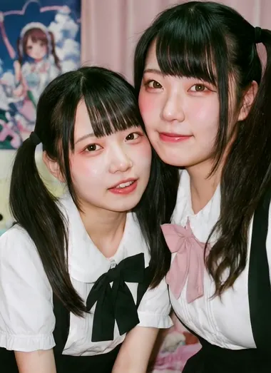 メイド喫茶風の空間や室内シチュエーションで登場します。