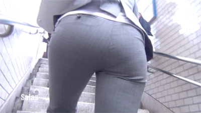 【FHD高画質】 美人OL グレーパンツスーツ ライン付き