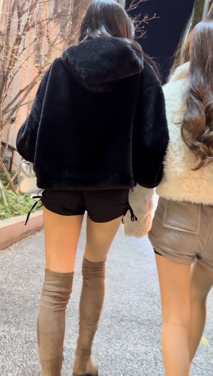 黒ショーパンロングブーツのお姉さんとベージュのショーパンに白のブーツのお姉さん!