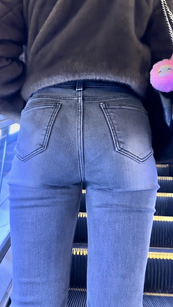 デニム女子コレクションVol.118 グレーデニムの美尻デニムのお姉さん2本!