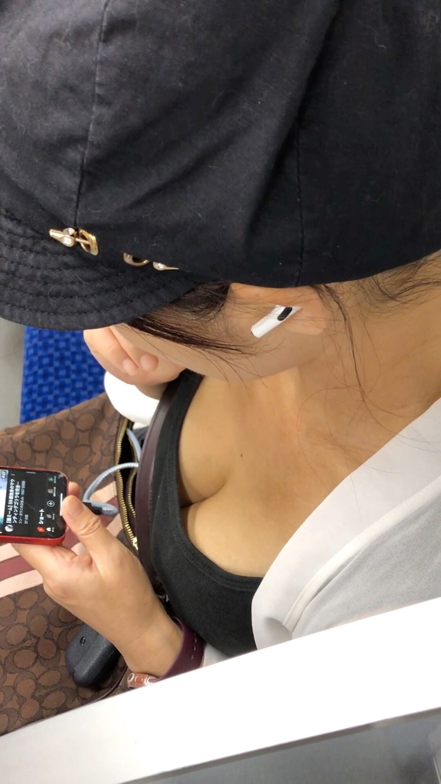 スマホを弄っていたので、至近距離から谷間に一転集中!