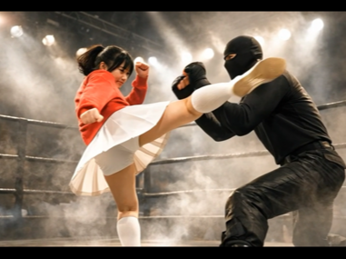AIで作成したプロレス動画です。Star Matesのかわいい女性たちがリングの上で闘いに挑みます。