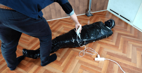 全身をラップとダクトテープで包装
