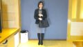 踊り場で下がったルーズソックスを整え、突き出す生尻を捉えます。生尻が角度を変え、透けパンティラインが見えます。