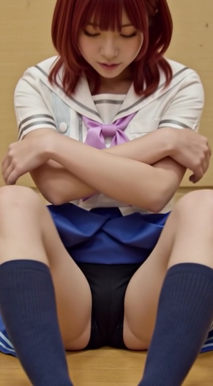 艶やかな黒髪が揺れるたび、黒アンスコがより妖艶に映える最強ビジュアル。制服のスカートから覗く黒い布地が、まるで禁断の果実のように誘惑してくる。