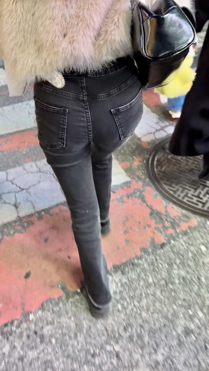 1人目(表題)はもこもこのアウターにスレンダーなフレアデニムのお姉さん