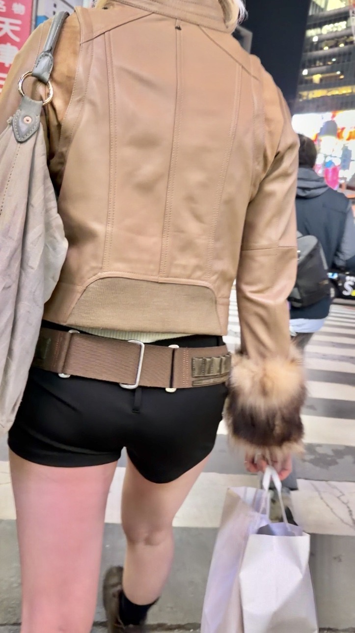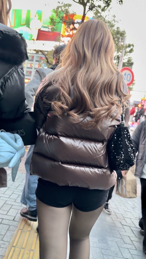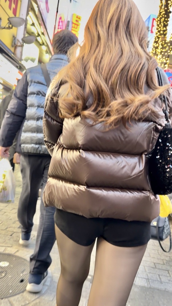 2人目は茶色のダウンに黒のショーパンのお姉さん