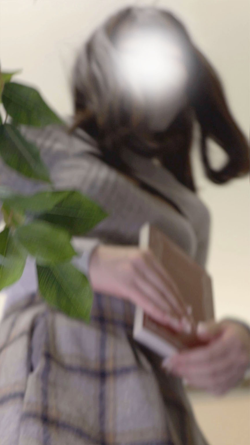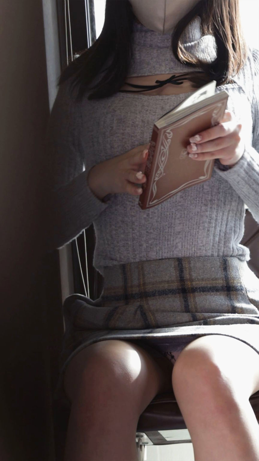 お・・・読書中のマスク美人さん発見です( *´艸`) 胸元の開いたニットを着て、明らかにドスケベじゃないですか(*^-^*)