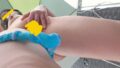 風船が割れる度に「わぁ」とびっくりするややさん、かわいい