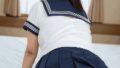 紺ハイレグ競泳水着ちゃん M字ポーズで股間ドアップ