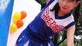 髪をなびかせ、大きな口を開けて全力スマイル。瞳がキラキラ輝く高揚感MAXのキックジャンプショットが最高の見どころポイントです。
