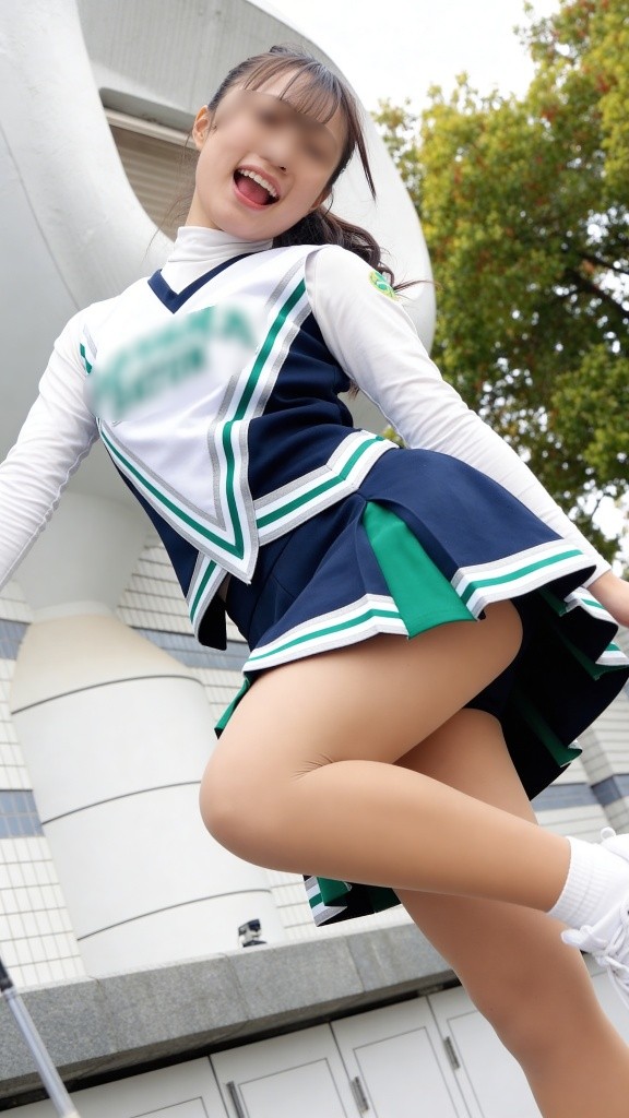 白×ネイビー×グリーンの爽快ユニフォームが目を引き、プリーツミニスカートが、ジャンプの瞬間にふわっと広がり健康的な太ももラインを大胆に魅せる!