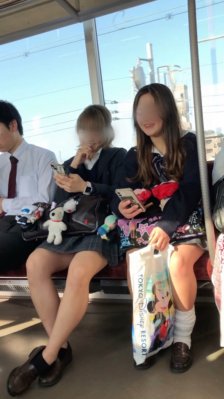 【放課後の眺め144】二人組の制服JKの生足を電車内で観察!