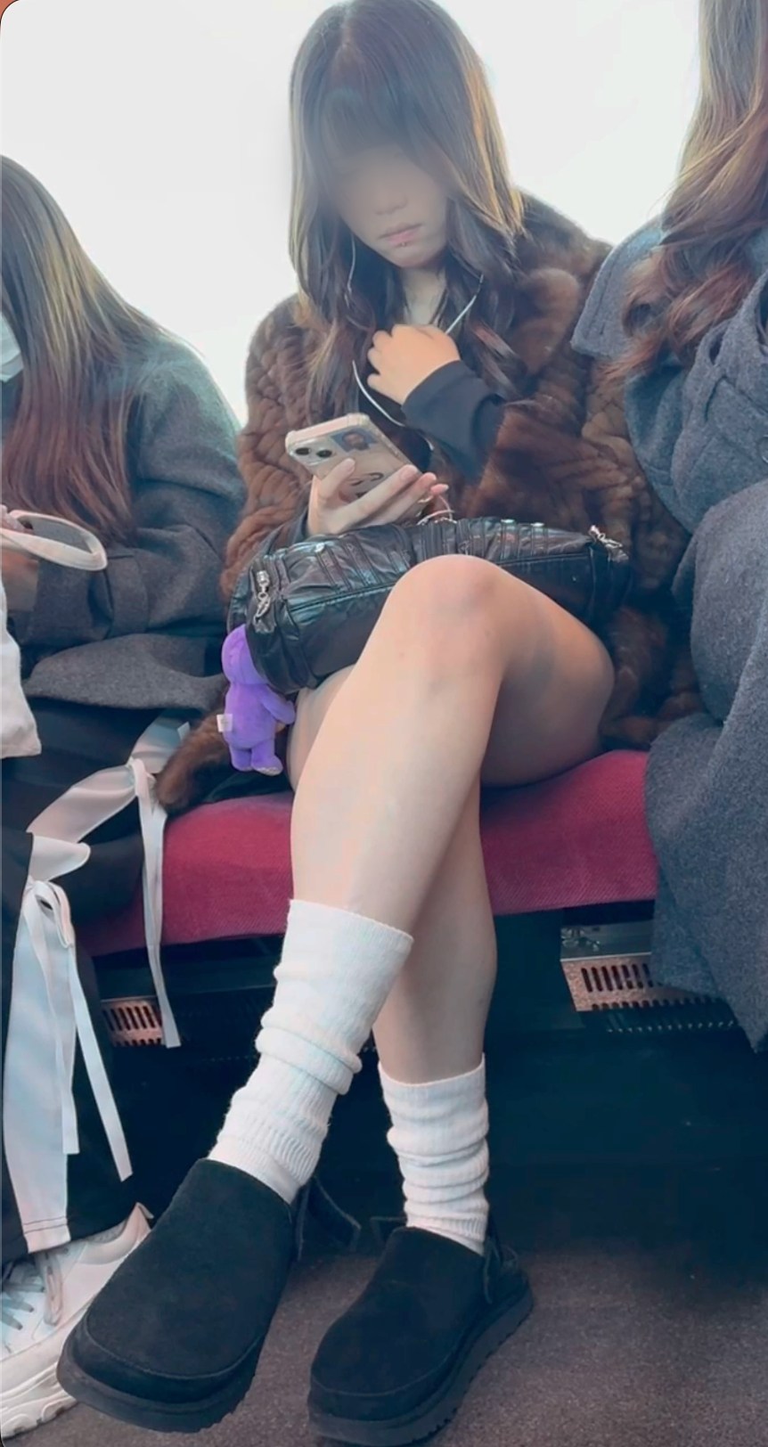 【再販】真冬のショーパン生脚お姉さん・絶妙脚組みで裏太ももを観察!