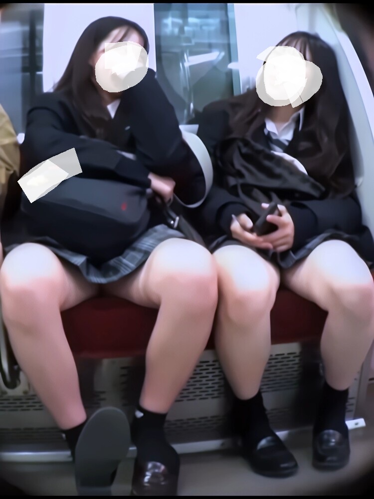 遅い時間に被写体を探しているととんでもないミニスカートの女子二人組を発見しすぐさまお座り姿を対面から撮影開始。