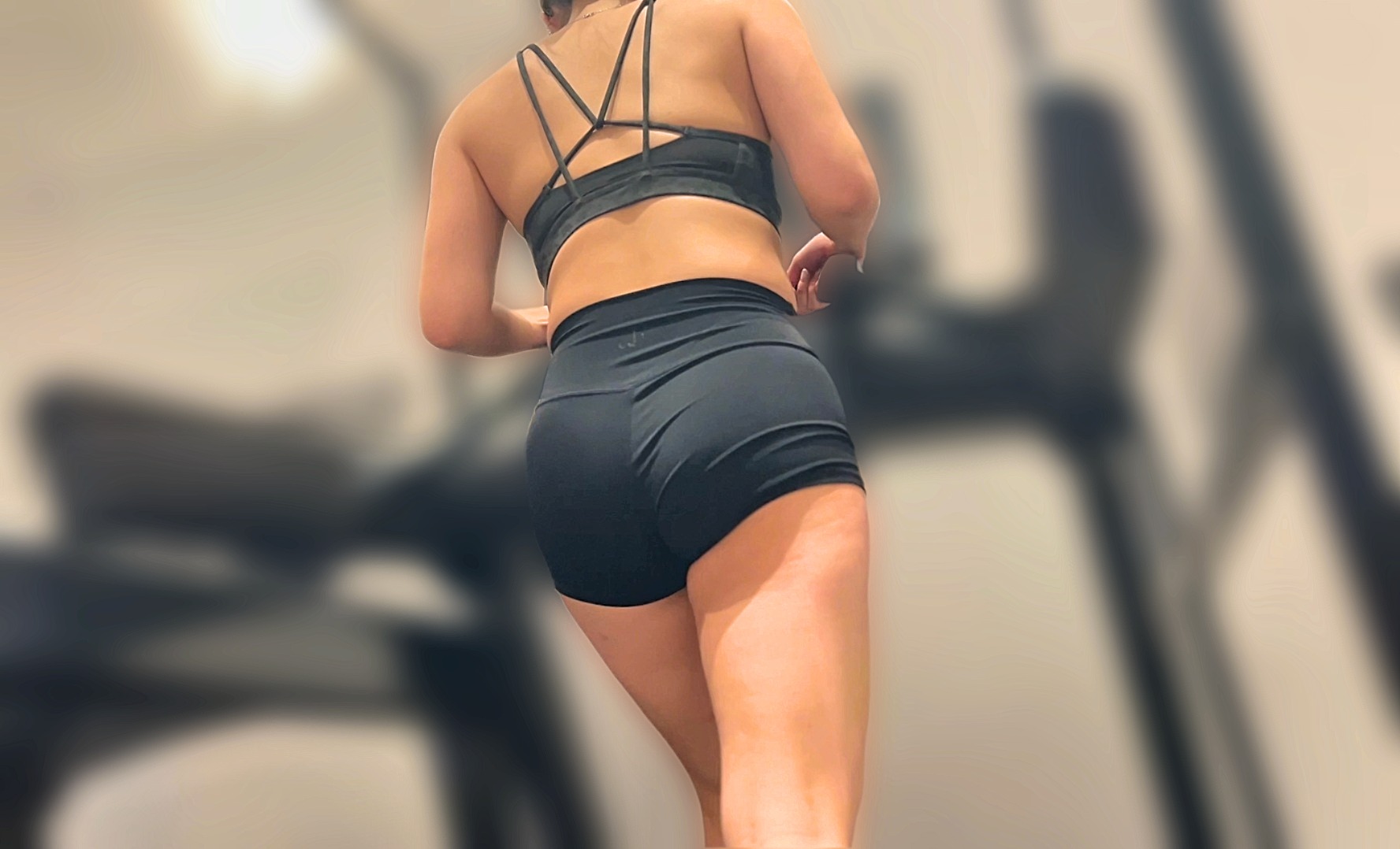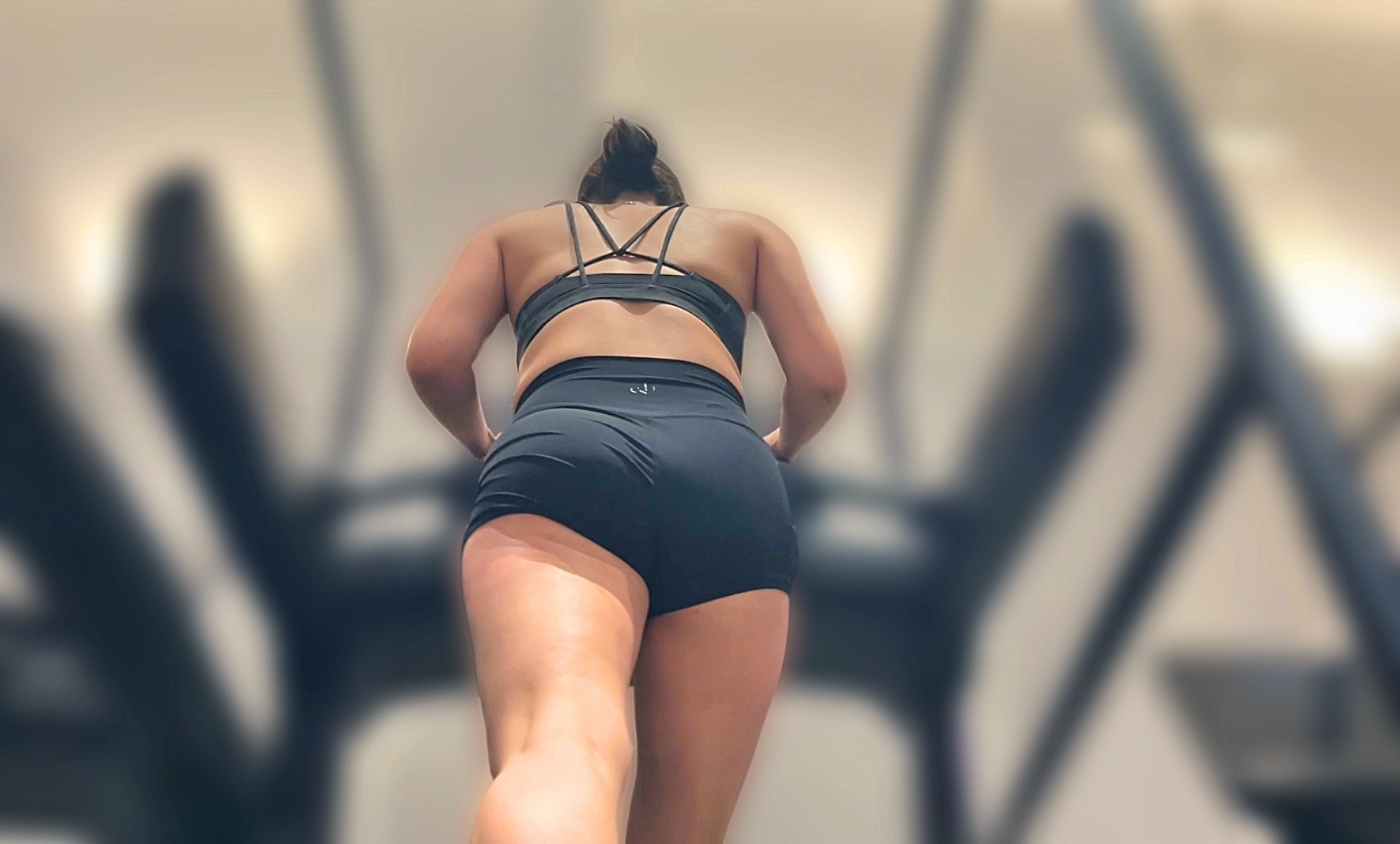 トレッドミルの上でウォーキングやランニングに勤しむ後ろ姿からたっぷりとスケベな身体を堪能しつつ、張りとデカさが下品な美巨尻でもうメロメロに。
